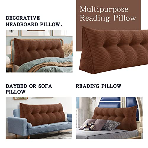 Vercart - Cuscino imbottito triangolare a forma di cuneo, formato grande, per testiera del letto o schienale del divano, con federa sfoderabile, adatto come cuscino per lettura o come supporto lombare per ufficio, Coffee, 39x7.9x19inch (100*20*50cm)
