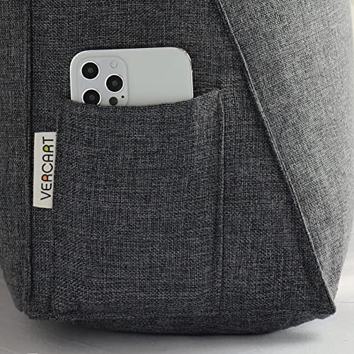 VERCART Cuscino da Lettura Cuneo Triangolare, Schienale Letto e Supporto Lombare Cervicale, Imbottiti Antireflusso Adulti, Cuscino per Gambe Ginocchia Dormire, Lino, Grigio, 60cm