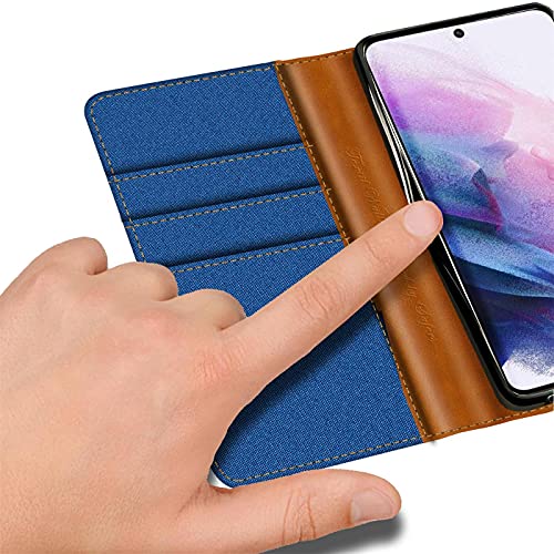 Verco Compatibile con Samsung Galaxy S23 Plus, custodia protettiva per Samsung S23+ 5G, in tessuto denim, a portafoglio, colore: blu