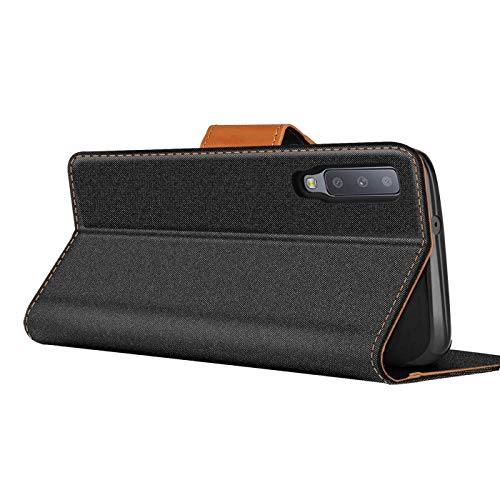 Verco Galaxy A7 (2018) Custodia per Cellulare, Caso Tessuto per Samsung Galaxy A7 Cover Tessilo Portafoglio Case, Nero