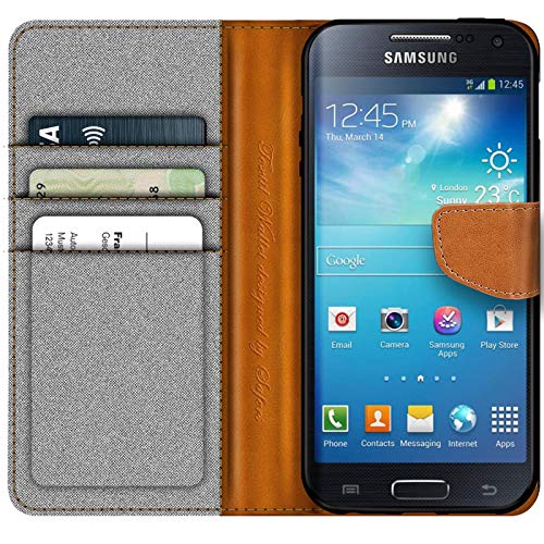 Verco Galaxy S4 Mini Custodia per Cellulare, Caso Tessuto per Samsung Galaxy S4 Mini Cover Tessilo Portafoglio Case, Grigio