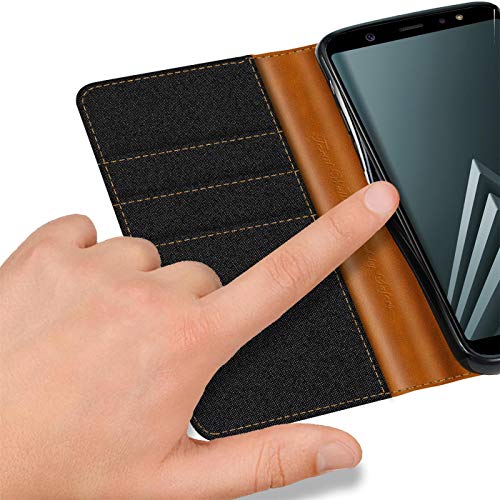 Verco Galaxy A6 Custodia per Cellulare, Caso Tessuto per Samsung Galaxy A6 (2018) Cover Tessilo Portafoglio Case, Nero