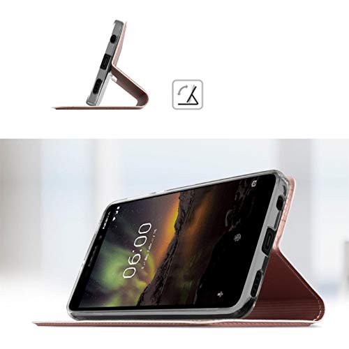 Verco Nokia 6.1 Cover, Custodia a Libro Pelle PU per Nokia 6.1 Case Booklet Protettiva [magnetica integrata], Rosa