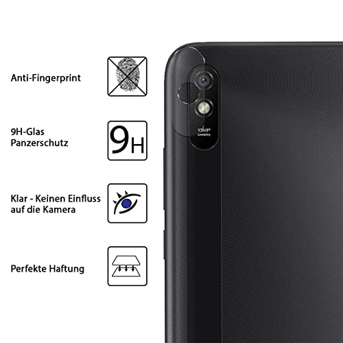Verco Pellicola protettiva in vetro temperato per Xiaomi Redmi 9A, set risparmio 4 in 1, 2 pellicole protettive per display, 2 pellicole protettive per la fotocamera Redmi 9A