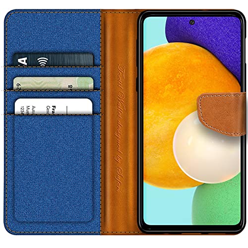 Verco Samsung A52 Custodia per Cellulare, Samsung A52 5G Caso Tessuto per Samsung Galaxy A52 Cover Tessilo Portafoglio Case, Blu