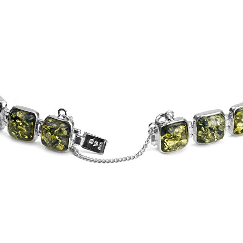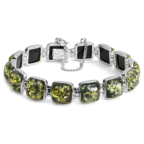 Noda Verde Ambra Argento Sterling Collegamento Moderno Piazza Bracciale 18 cm