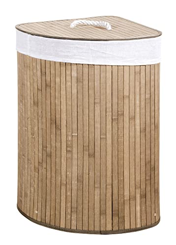 VERDELOOK Cesto porta biancheria ad angolo con coperchio e maniglie foderato, 35x35x60 cm, bambù naturale