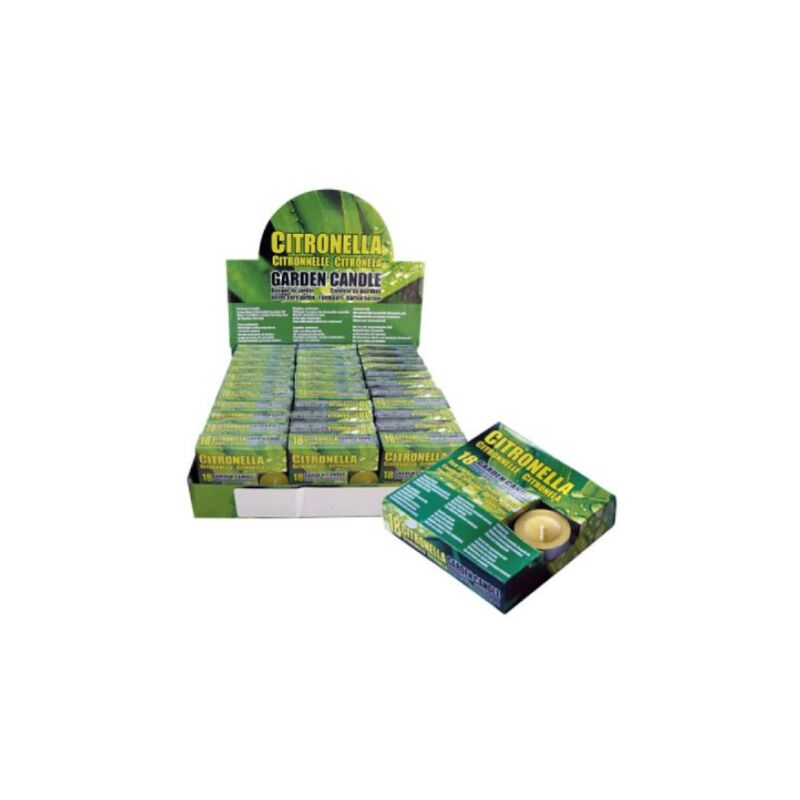 LUMINI CIRONELLA Mini candele in contenitore di alluminio racchiuse in confezioni da 18 pezzi. Cera all'essenza di citronella. Utilizzabili anche all'interno di piccole lanterne.Dimensione: Ø 3.8 - H.1.3Per uso esterno.Unità vendute: 1 confezione da 18pz. Caratteristiche tecniche Accessori in Dotazione