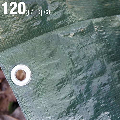 VERDELOOK Telo occhiellato in polietilene 5x4 m, grammatura 120 g/m², Verde, Multiuso, per Copertura e stoccaggio Merce