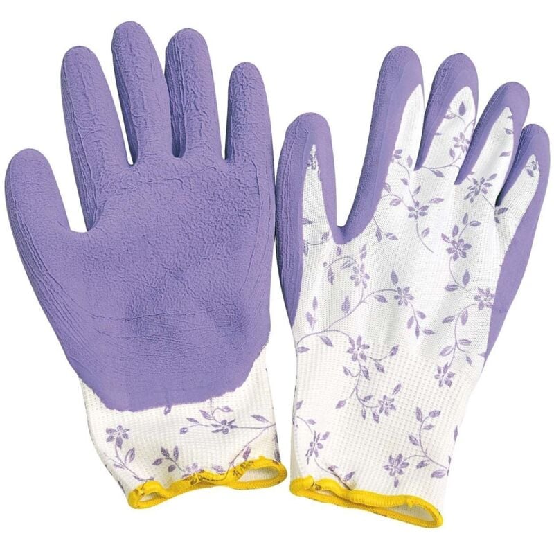 Indicato per lavori medio-pesanti. Guanti da giardino in lattice ricoperto M In cotone con palmo e dita ricoperte in lattice. Colore verde lime. Sul dorso immagine floreale stampata. La rugosità del guanto permette una presa antiscivolo. Indicato per lavori medio-pesanti.