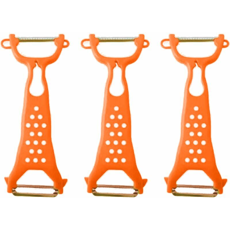 1. MANIGLIA DI SICUREZZA DUREVOLE: la grande impugnatura in plastica a forma di Y, leggera e resistente, riduce lo stress, si stacca rapidamente, fa risparmiare tempo e riduce il lavoro del polso. Anche le persone con artrite possono usarlo. Inoltre, i pelapatate per la frutta e per la cottura devono essere separati. Tre pelapatate qui in diversi colori, puoi usare un pelapatate in cucina, un pelapatate in soggiorno e un pelapatate per le attività all'aperto. 2. Pelapatate multiplo: il pelapatate affilato può anche tagliare facilmente a julienne carote, verdure, cetrioli per la tua insalata. C'è un orecchino rotondo che può aiutarti a scavare le patate che non sono perfette e senza sprechi eccessivi. Il piccolo orecchino a punta è per tagliare l'arancia, la scorza di limone. Usa il buco al centro per schiacciare la patata e macinare lo zenzero. 3. LAME IN ACCIAIO INOSSIDABILE ANTIRUGGINE: le lame in acciaio inossidabile di alta qualità sono antiruggine purché vengano pulite dopo la