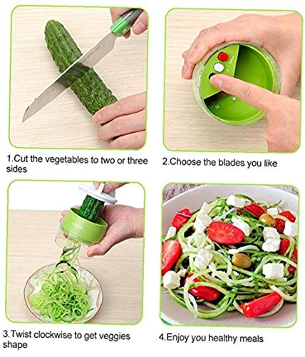 ?Buona qualità? sua fatti di buoni materiali plastici e le lame sono taglienti, girare la verdura e fondamentalmente si possono ottenere le forme di pasta che si desidera. gadget brillanti da cucina per la cottura, ottimo in occasioni cibo che decorano, insalate rendere facile e creatore di zucchine spaghetti.