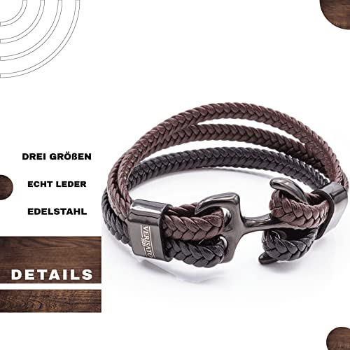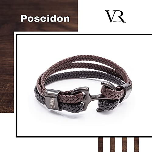 VERISATO Bracciale Ancora Uomo Marrone 22cm - Bracciale Ancora Poseidon Bracciale Donna Corda Vela con Ancora Gioielli Regali per Uomo Braccialetti Partner
