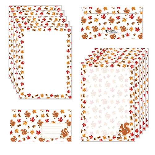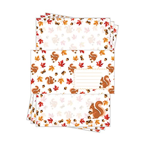 Verkiss. Carta da lettere con motivo, set con busta, per adulti e bambini, 25 fogli DIN A4, carta naturale 120 g/m² + 25 buste DIN (squirrel)