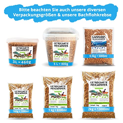 Vermi di farina essiccati, secchio da 2,5 litri (400 g) di mangime, snack ricco di proteine per uccelli selvatici, pesci, rettili, tartarughe e ricci
