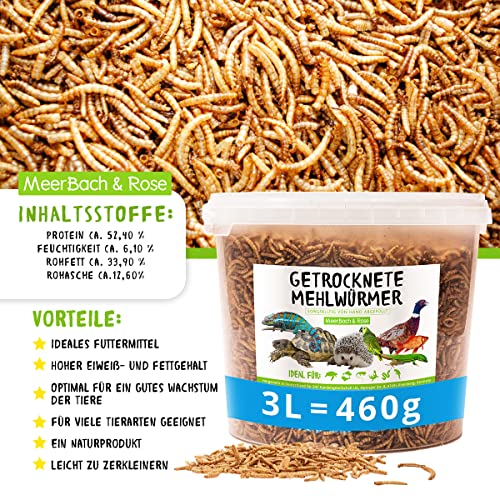 Con oltre il 50% di proteine e molte vitamine al loro interno, i vermi della farina essiccati sono un ottimo fornitore di energia. I vermi si sbriciolano con facilità e possono quindi essere facilmente somministrati come mangime a piccoli rettili, uccelli selvatici e pesci.