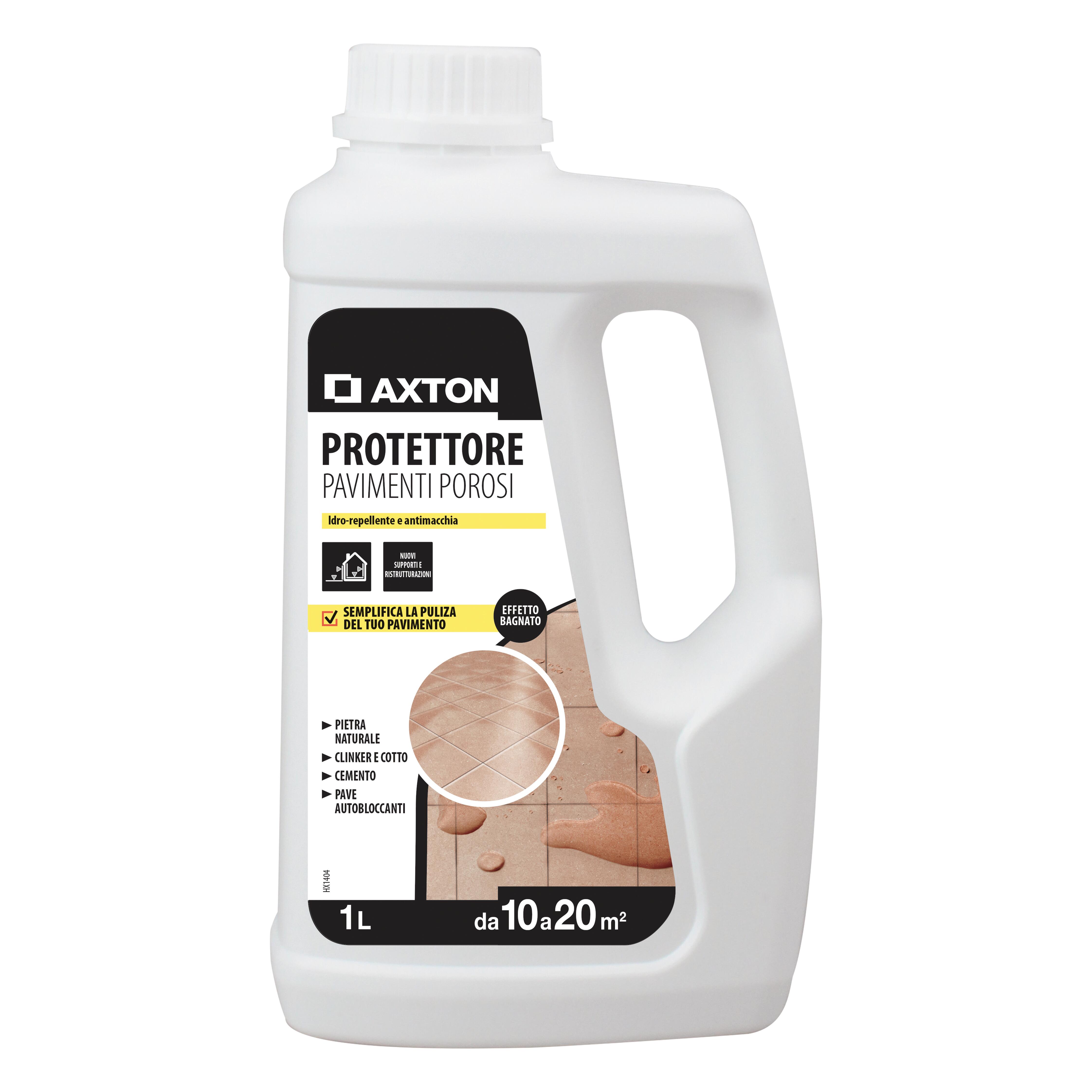 PROTETT.IDRO PAV.PORO EFF.BAGN 1L AXTON. Proteggere pavimenti dalle macchie. impermeabilizzare. Protegge il pavimento dalle macchie di acqua, grasso ed olio. Aumenta la luminosità e lascia un aspetto umido