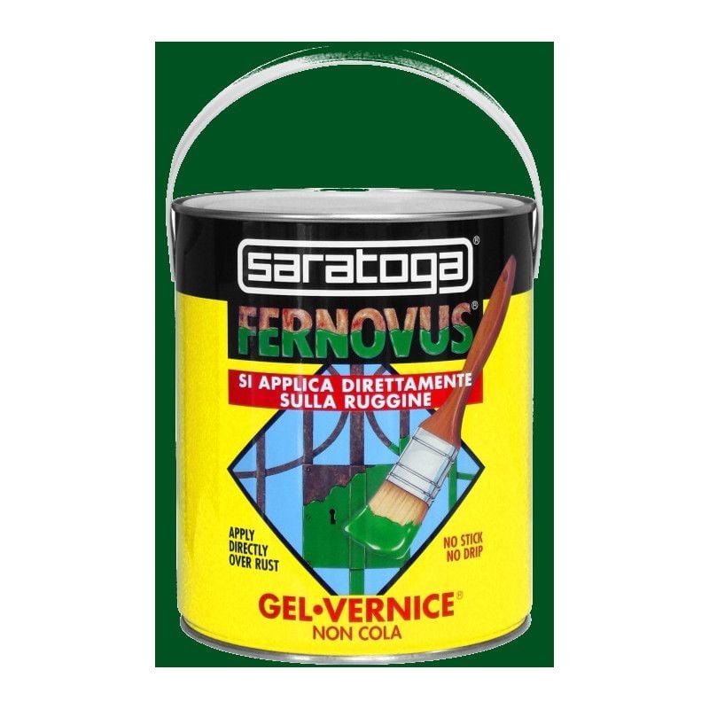 Verice Antiruggine Gel Applcabile Direttamente Sulla Ruggine "L'Originale" Verde Prato Brillante, Saratoga Gel vernice formulata assolutamente innovativa che si applica direttamente sulla ruggine senza dover ricorrere a trattamenti preventivi per eliminare la ruggine o per applicare l'antiruggine o il convertitore di ruggine. Può essere applicato direttamente sulla ruggine senza carteggiare né stendere l'antiruggine. Semplice da usare garantisce una verniciatura favolosa e di lunga durata. Può essere applicato anche su superfici verticali:non cola e non gocciola. Elevato potere riempitivo. Disponibile in una vasta gamma di tinte:brillanti,satinate,opache,metallizzate,martellate e micacee con effetto antichizzante . Ottima pennellabilità, dilatazione e scorrimento. Miscelare sempre prima dell'uso. Superfici nuove: sgrassare e quindi applicare Fernovus. Superfici da riverniciare: eliminare vernici in fase di distacco e la ruggine friabile, sgrassare e quindi applicare Fernovus.