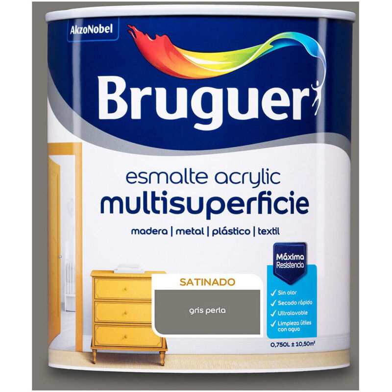 Smalto acrilico multisuperficie satinato grigio perla 0,750l bruguer ideale per legno metallo plastica tessuto massima resistenza inodore asciugatura rapida ultra pulibile utile pulizia con acqua interni ed esterni