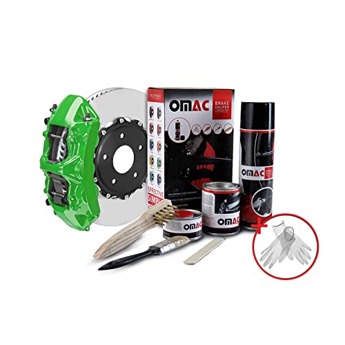 OMAC Set di vernice per pinza dei freni, per la pulizia dei freni e l'indurimento, resistente al calore, set completo per 4 pinze freni, 7 pezzi (Washington verde)