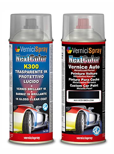 Kit Vernice Auto Spray compatibile con SKODA FABIA LC9X DEEP BLACK MET. e Trasparente Lucido Spray - kit ritocco vernice metallizzata 400+400 ml di VerniciSpray