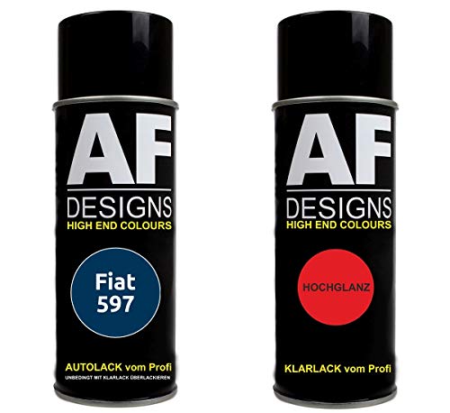 Auto Vernice Spray Set per Fiat 597 Blu Teseo MetallicBase Trasparente 2x400ml con vernice spray trasparente
