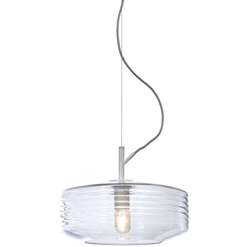 Sospensione tonda in vetro ambrato oppure trasparente con elementi in metallo 1 lampadina E27 max 40W NON INCLUSA IP20 lunghezza caco elettrico cm 240 Dimensioni: Diametro 34 cm, H 35 cm