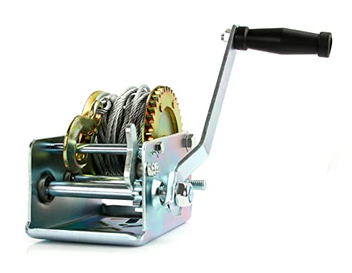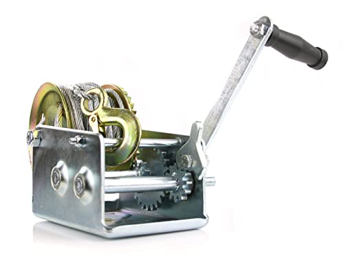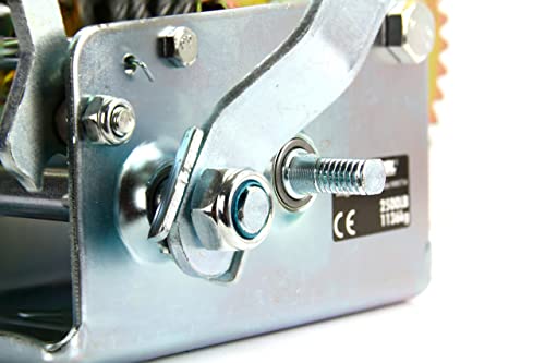 Verricello Paranco Argano Manuale a Manovella 1136Kg 2500 lb | Fune Acciaio 10m | 2 Marce | Gancio di Chiusura | Mecchanismo di Sicurezza