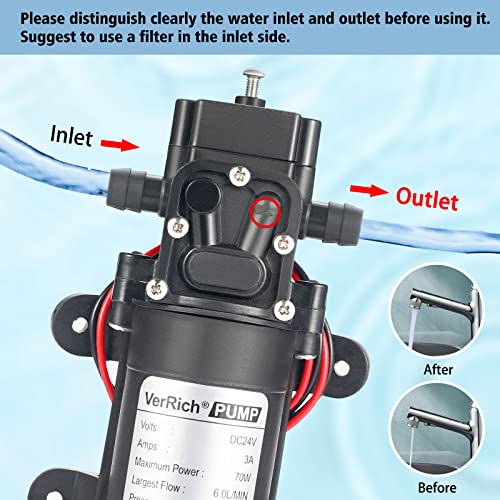 VerRich Pompa acqua, pompe a diaframma 24 V CC Pompa irroratrice autoadescante da 70 W 6 l/min 0.9MPA 131 PSI