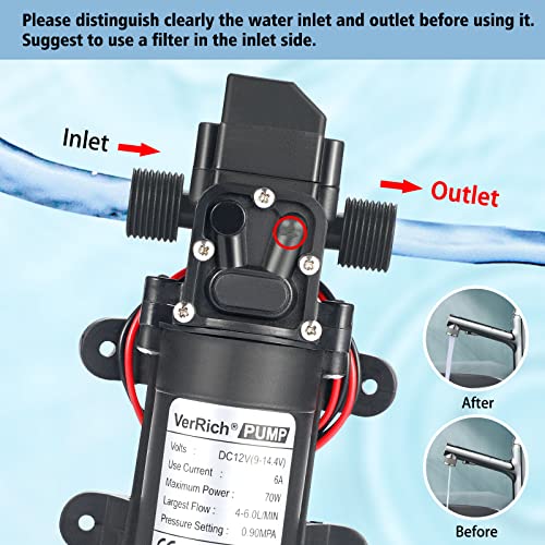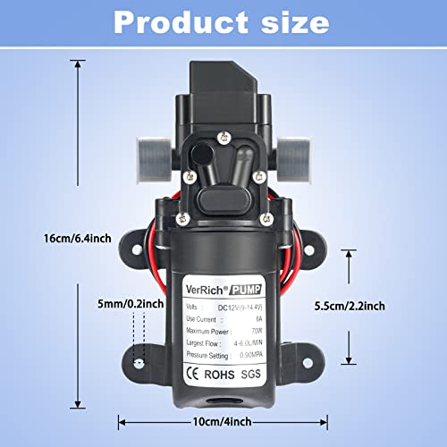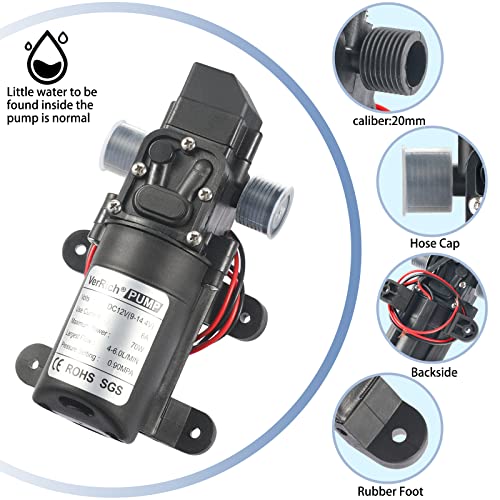 VerRich 12V Pompe per Acqua Pompa a Membrana autoadescante ad Alta Pressione con connettore 20mm per Camper, roulotte, Giardino per Barche