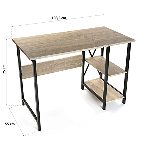 Versa Cardiff Scrivania per Computer, Scrittoio, Tavolo da Ufficio, Pieghevole, Misure (A x L x l) 75 x 55 x 108,5 cm, Legno e Metallo, Color Marrone