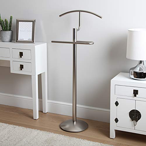 VERSA Oakley Servo Muto Moderno e Multifunzionale, Appendiabiti Indossatore per Camera da Letto e Spogliatoio, Misure (A x L x l) 112 x 28 x 40 cm, Metallo, Colore Argento