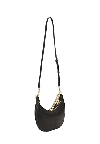 Borsa a tracolla nera da donna mezza luna manica a catena oro lucido Small Bag