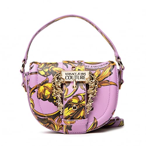 Versace JEANS COUTURE Borsa a tracolla mezzaluna in ecopelle saffiano viola con stampa Regalia Baroque