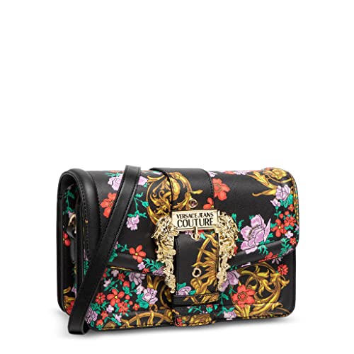 Versace JEANS COUTURE. Borsa a tracolla Couture I in pelle nero con stampa Regalia Baroque e Sun Flower Garland 72VA4BF1