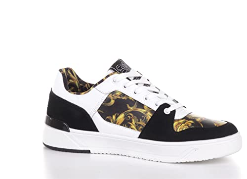 VERSACE JEANS COUTURE Sneaker da Uomo Pelle Nera Stampa Baroque