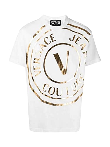 Versace Jeans Couture T-Shirt Jeans Couture Bianco da Uomo a Manica Corta con Maxi Logo Oro Frontale Uomo T-Shirt L