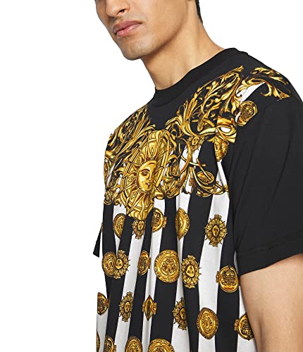 Versace Jeans Uomo Maglietta T-Shirt 72GAH6RCJS062 Multicolore G89 Black + Gold