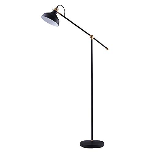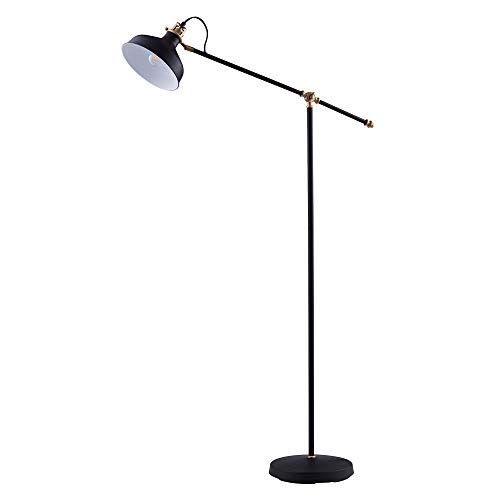 struttura in metallo, superficie nera, paralume sagomato e piedistallo. Una perfetta illuminazione per l'apprendimento, la lettura di libri e la luce indiretta. Può essere combinato con una lampada da tavolo abbinata.