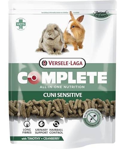 Versele-Laga Complete Cuni Sensitive | Confezione da 4 | 4 x 500 g | Mangime completo per conigli | Supporta i boli di pelo | Pellet tutto in uno | Sviluppato da veterinari