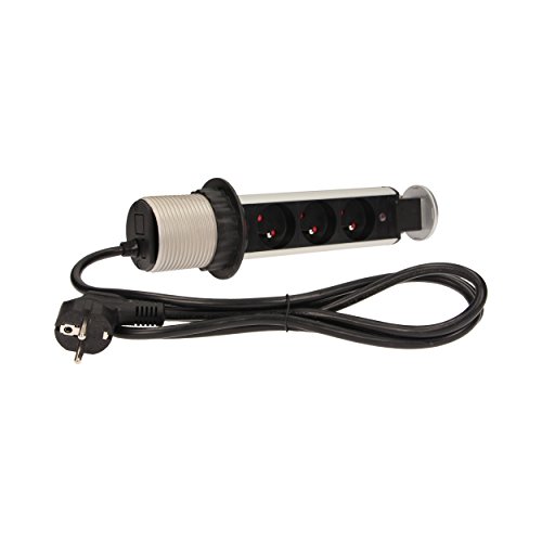 Orno versenkbare tavolo della presa 3 X 250 V AC con blocco e lungo 1,8 m cavo retrattile da tavolo con presa 3 X 250 V AC con blocco e cavo da 1,8 m a, 1 pezzi, argentati, or AE 1347