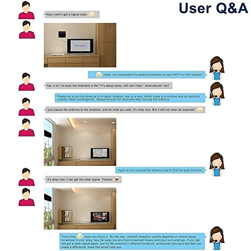 【Garanzia Acquisto】 Offriamo i Antenna Interno TV con una garanzia di 12 mesi. Ma notare che la reception dell'aria dipende da fattori ambientali e non può garantire la ricezione in ogni condizione. Offriamo una garanzia di rimborso di 30 giorni su tutti gli ordini in modo da poter verificare l'idoneità del dell'antenna nella vostra zona. Se avete qualche problema, non esitate a contattarci