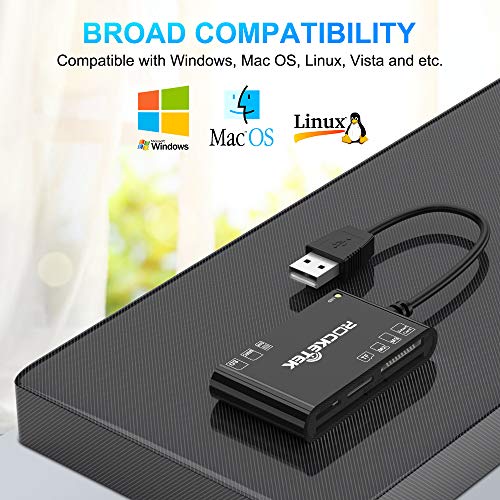 Versione aggiornata - Rocketek Mini USB3.0 lettore di schede di memoria | Micro USB OTG adattatore | Scrivere con 2 slot per PC, Smartphone Android e Tablet Devices | USB3.0 / lettore di schede di OTG