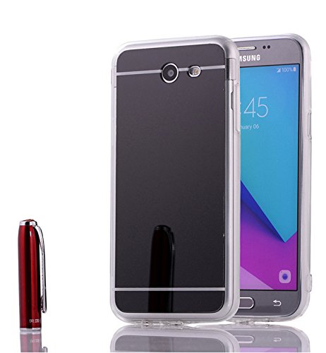 Versione Americana - Galaxy J5 2017 Specchio Cover,Custodia Morbida Ultra-sottile Silicone TPU per Samsung Galaxy J5 2017, Felfy Glitter Luminosi Brillanti Scintillio di Shinny Bling Silicone Lusso Elegante Specchio Mirror Back Cover Anti-Scratch e Protezione Goccia Bumper per Samsung Galaxy J5 2017 + 1 Argentano Penna dello Stilo + 1 Spina della Polvere.Nero