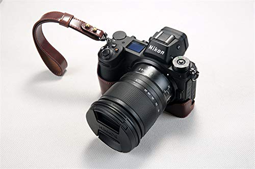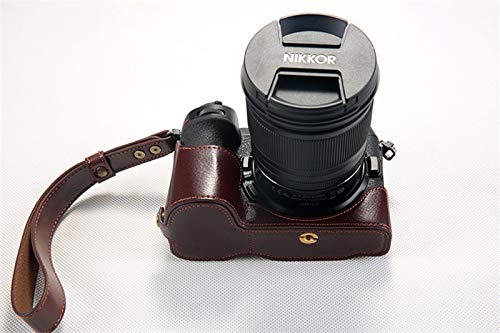 Versione di apertura inferiore per Nikon Z6 Custodia protettiva in vera pelle mezza fotocamera con cinturino marrone scuro