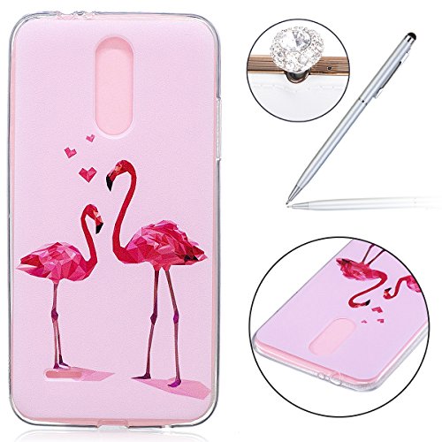Versione Europea - LG K4 2017 Cover Rigida,Felfy per Samsung LG K4 2017 Custodia Trasparente,Coperture TPU Silicone Glitter Gel Cover Clear con Colorata Disegno a Motivi Floreali/Farfalla Pattern Elegante di Lusso Shinny Bling Ultra sottile Morbido Anti-Scratch Drop Protection Bumper Rubber Shockproof Custodia Cover per LG K4 2017 + 1 Stilo Argento + 1 Spina di Polvere.Fenicotteri