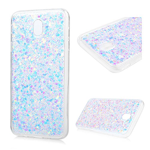 J7 2017 (Versione Europea) Cover Silicone, Custodia Bling Glitter Brillanti Interno e Morbido TPU Gomma Trasparente Protettiva per Samsung Galaxy J7 2017 (Versione Europea) - Colore di Argento + Viola + Rosa (Tre Cover)