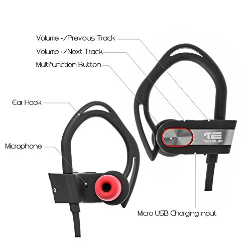 Versione Nuova - Auricolari Bluetooth TechElec SP-X resistenti al sudore [Sport & Running & Palestra] cuffie stereo con microfono - 7 ore di riproduzione