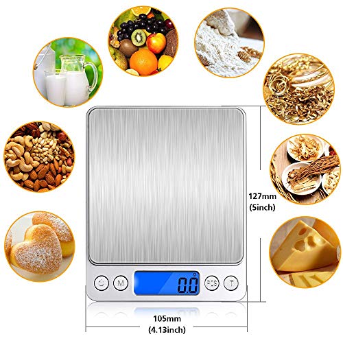 【Scala precisa】 Ha un'alta precisione di 0,1 g / 0,01 oz., La gamma di peso è compresa tra 0,1-3000 g che soddisfa tutta la domanda in cucina per una cucina sana, ideale per l'uso in cucina, panetteria.