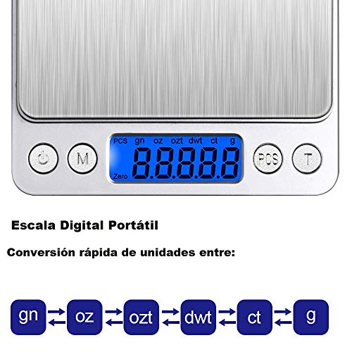 【Design intelligente】 Bilancia digitale con 6 unità di peso g, gn, ozt, oz, dwt, ct, così posso misurare cose diverse come gioielli, medicine, semi, ingredienti nutrizionali ecc. Reazione veloce, si spegne automaticamente dopo 180 secondi.